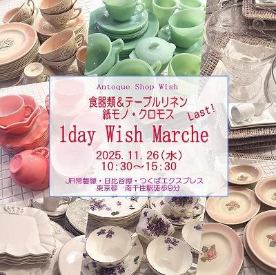 アンティークショップWishはフランスやイギリスなどのヨーロッパやアメリカの素敵な可愛いアンティークをお届けしています♪ 南仏風のおうちサロン“スタジオミュゼ”では4月と10月のマルシェ・ド・Wish(アンティーク自宅ショップ)をはじめ、様々なイベントやレッスンを開催しています♪