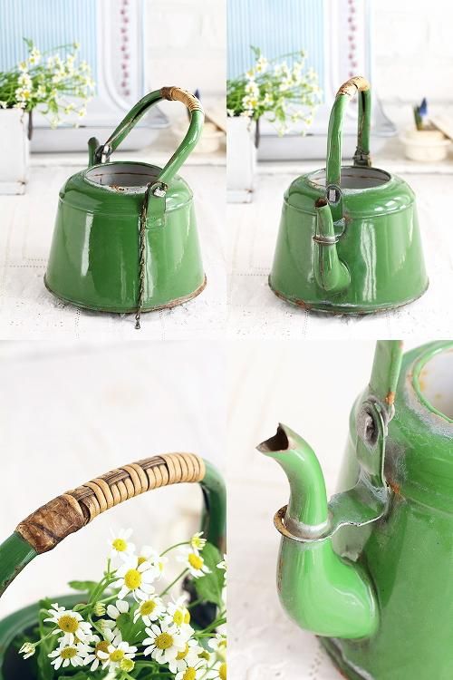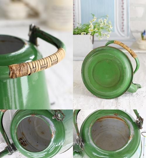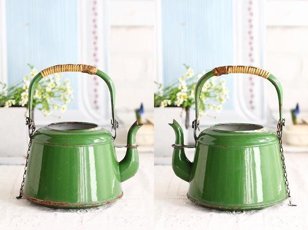 アンティークホーローのグリーンのケトルです。