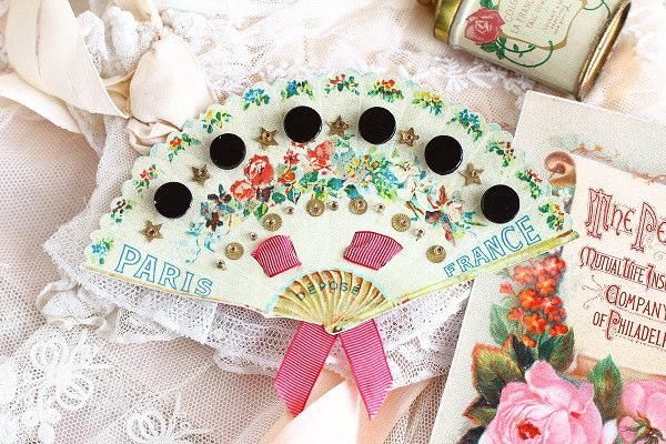 フランスのアンティークボタンメルスリー(ソーイング)ファンカードです。